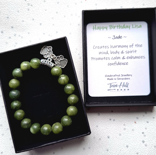 Jade stone stretch bracelet with silver plated divider beads - sterling silver also available (additional charge applies)